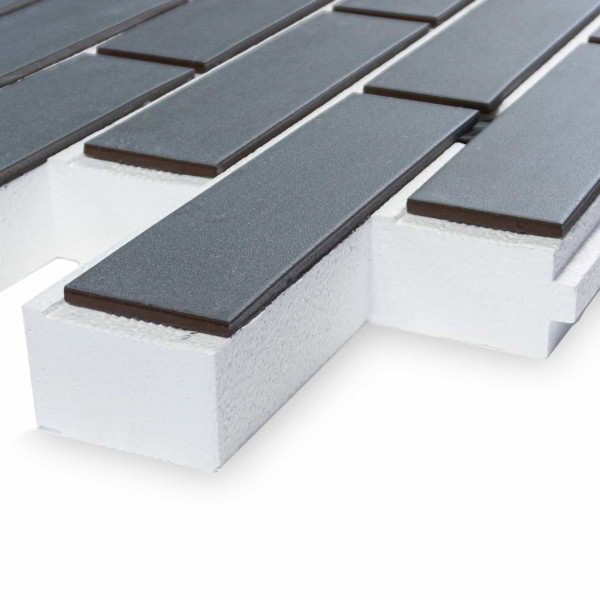 Соединение: плитка впрессована в утеплитель — монолитная конструкция без клеевых прослоек.